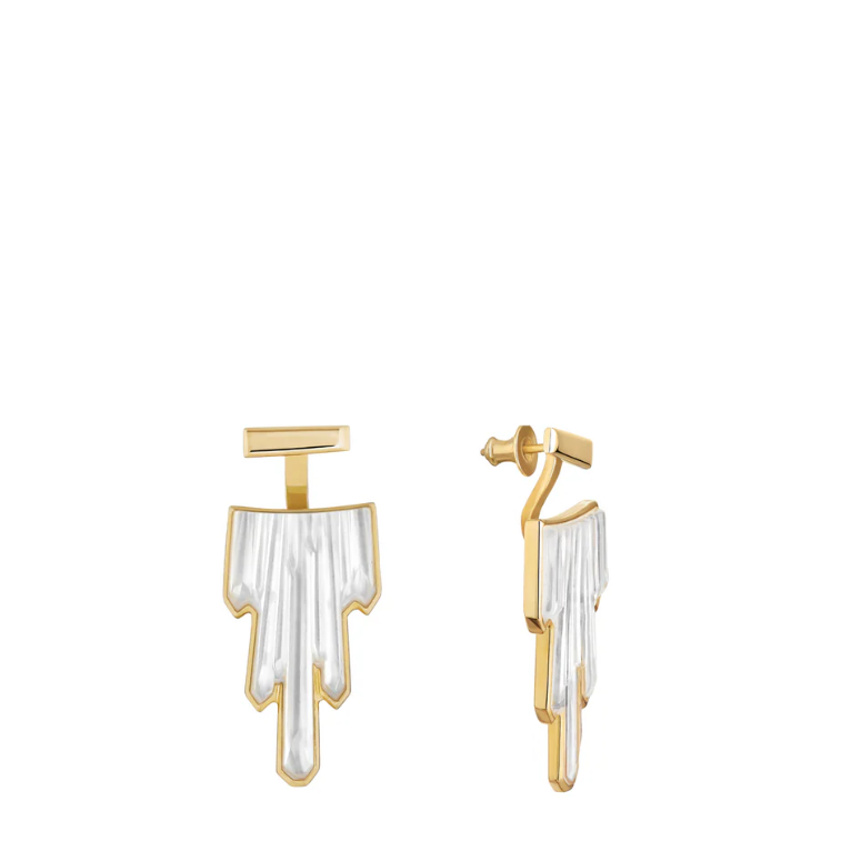 Серьги из 2-х частей белые Lalique Terramineral, позолота